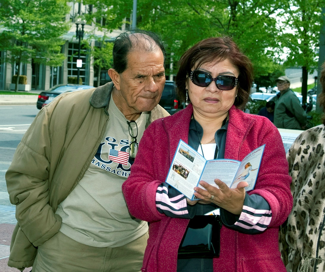 家住剑桥市的尹先生表示,他关注法轮功有一段时间了,觉得“法轮大法好”,法轮功“完全就不是中共所说的”。他特意取了几份真相资料,表示要拿回家深入了解。