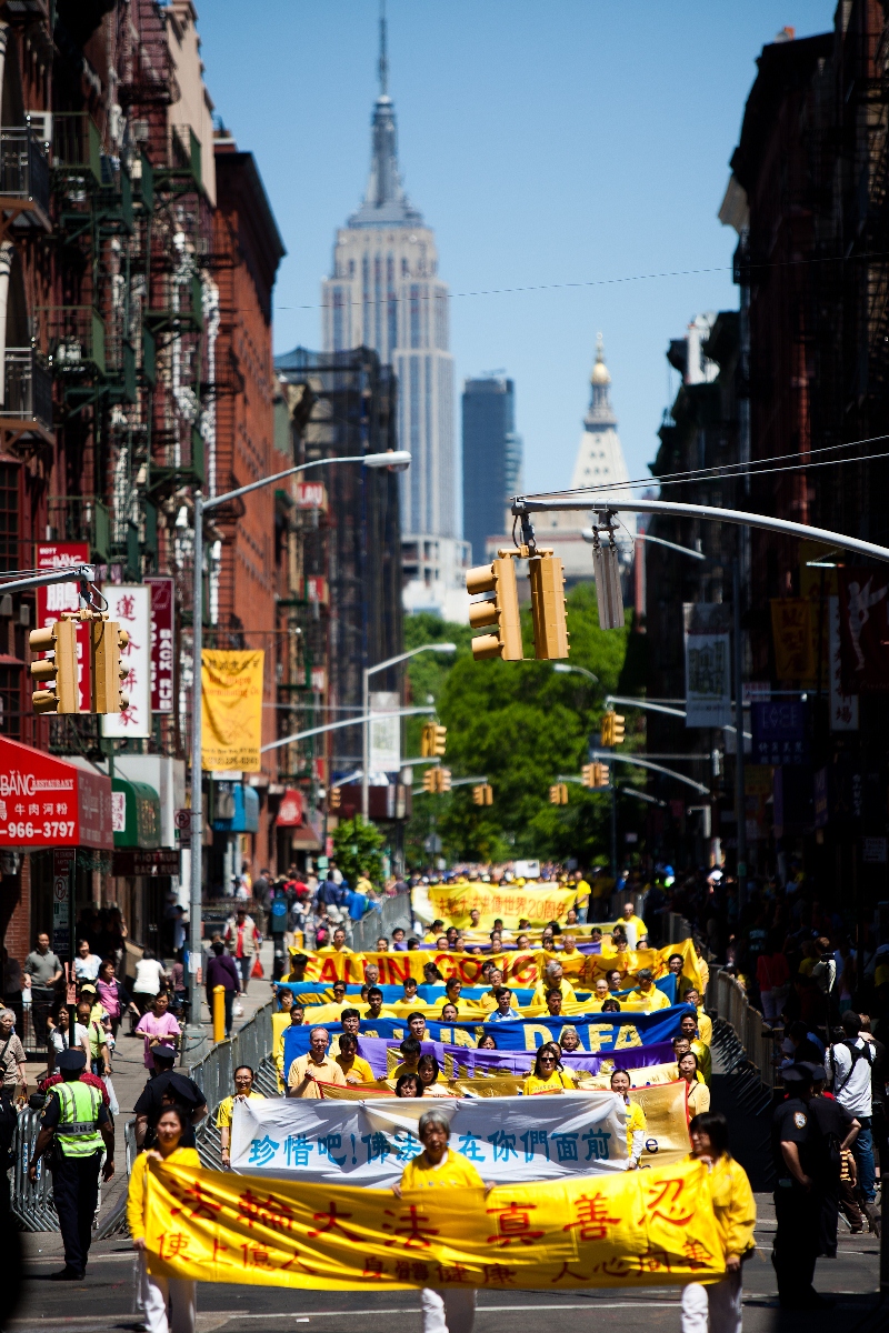 今年的五月十三日是法轮大法洪传二十年的纪念日,在五月十二日这一天,约七千名来自世界各国的法轮大法修炼者代表在纽约曼哈顿唐人街举行二十周年庆祝游行。今年观看法轮大法修炼人的游行时,人们内心充满的是欣喜,敬意和对未来的希望。