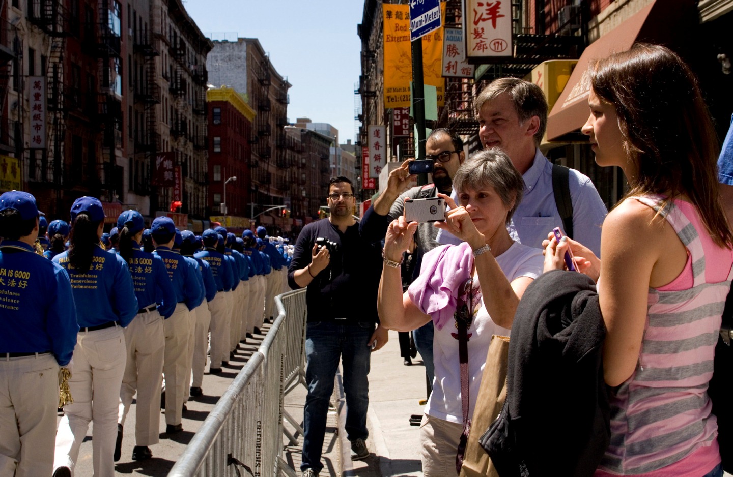 与陈先生的含蓄正相反的是三个年轻人,他们是刚从中国大陆到纽约上学杨先生,林先生和谢小姐。五月十二日他们结伴来到唐人街,有幸看到了法轮大法洪传二十周年的庆祝游行。