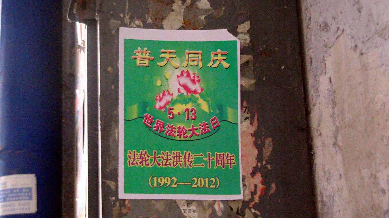 中央党校附近,悬挂着“庆祝5.13世界法轮大法日”横幅;颐和园附近的路边和树上挂着“5月13日 庆祝法轮大法洪传世界二十周年”、“法轮大法好”、“世界需要真善忍”等内容的条幅;北京大学周围的电杆、围墙、广告栏上,张贴着真相不干胶。