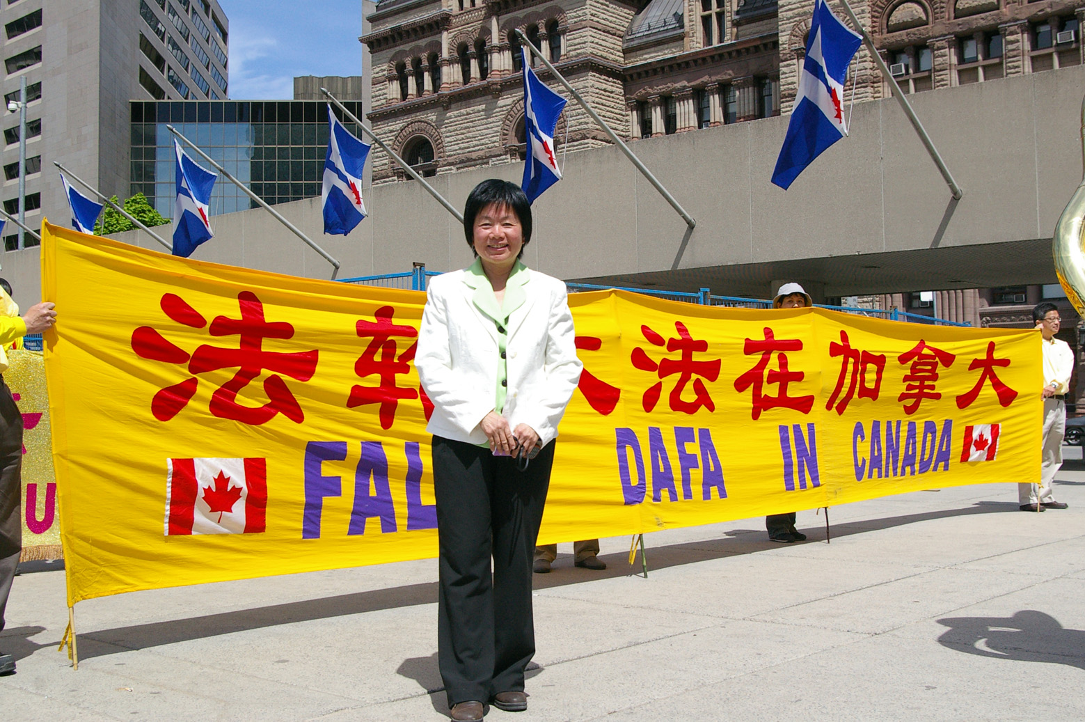 ![]() 黄茹音参加在多伦多市政府前的飞利浦广场举行的“庆祝法轮大法洪传世界二十周年”庆祝活动。 |