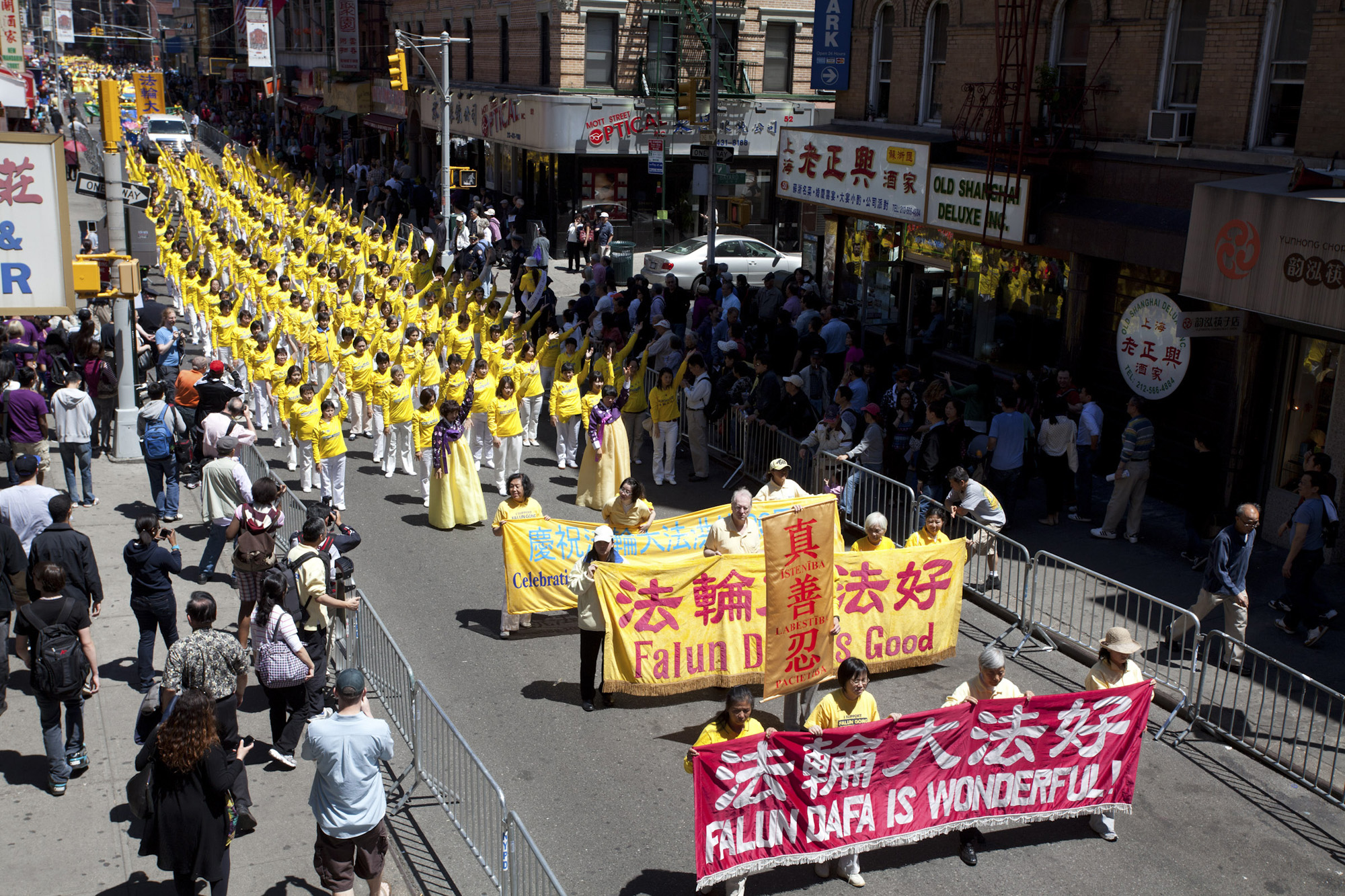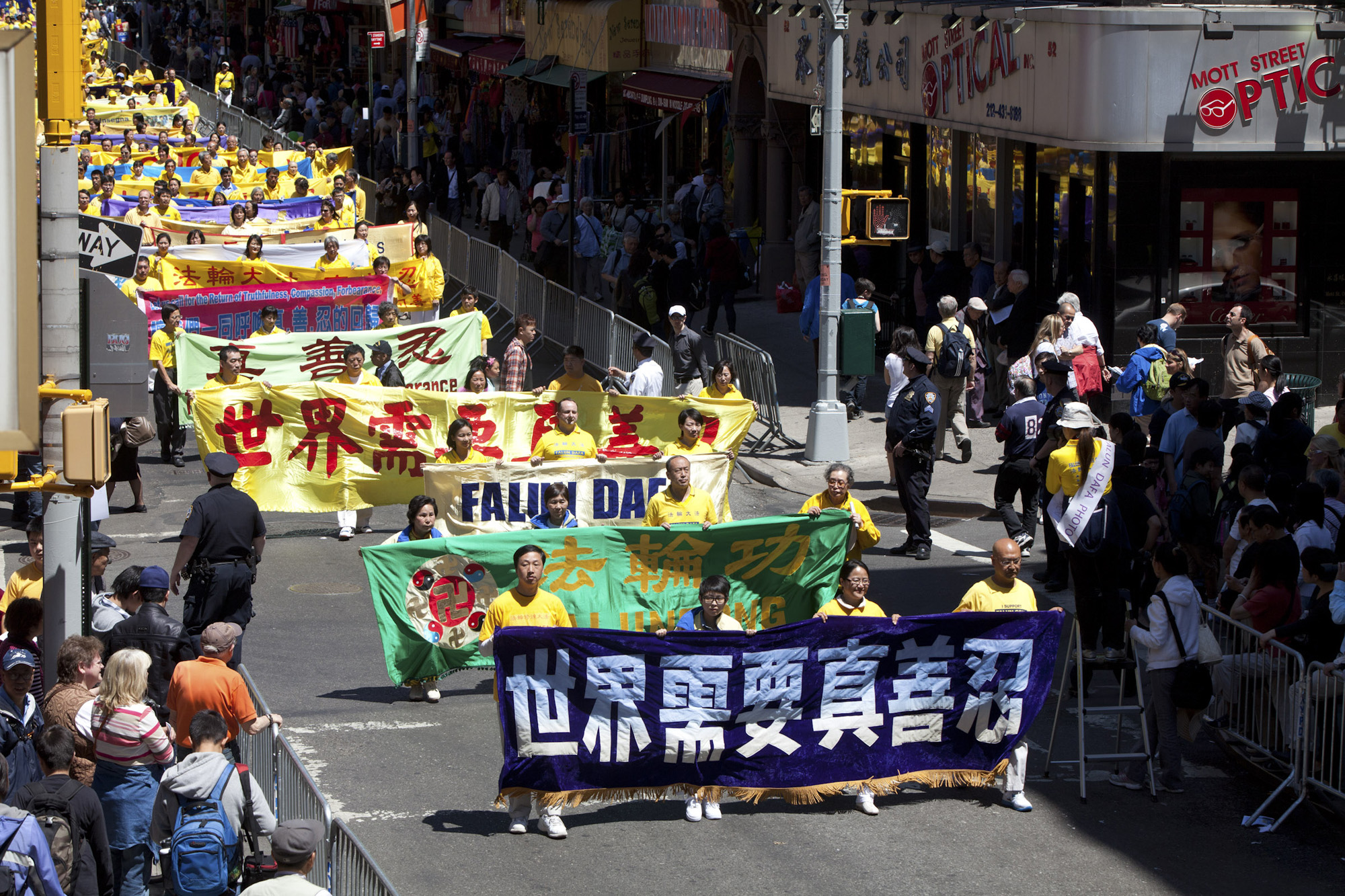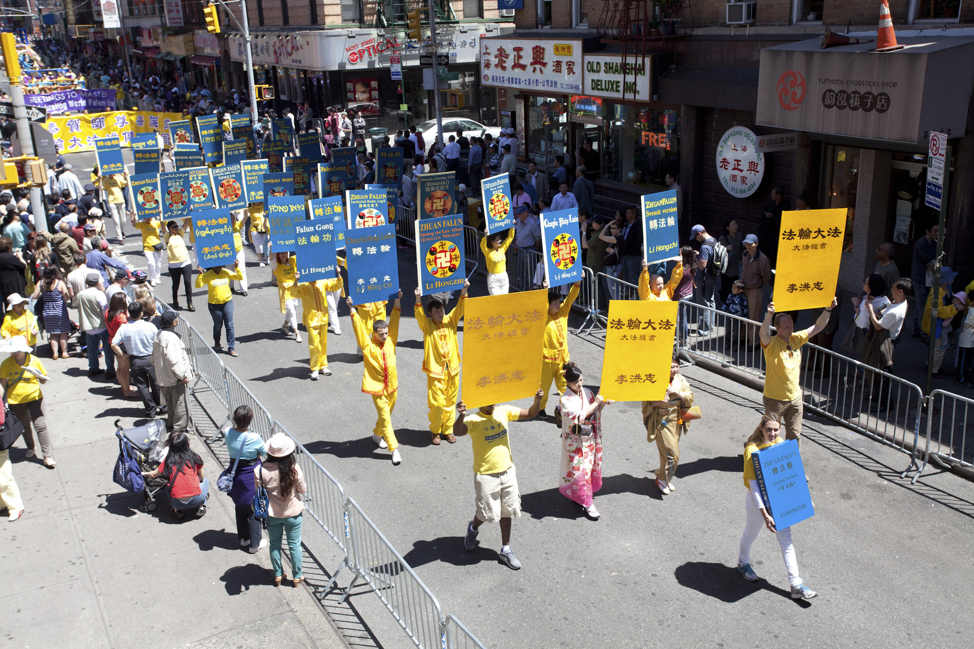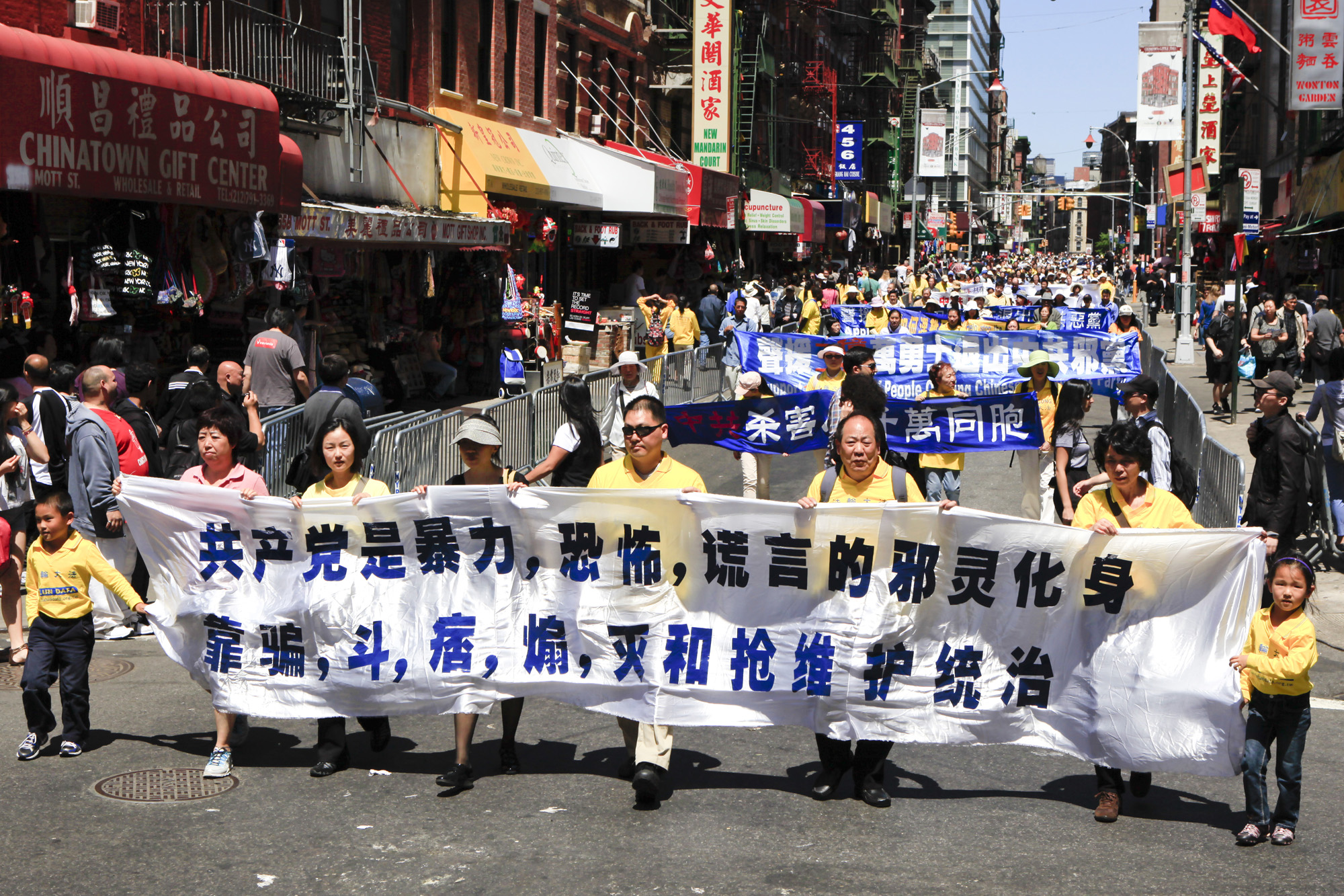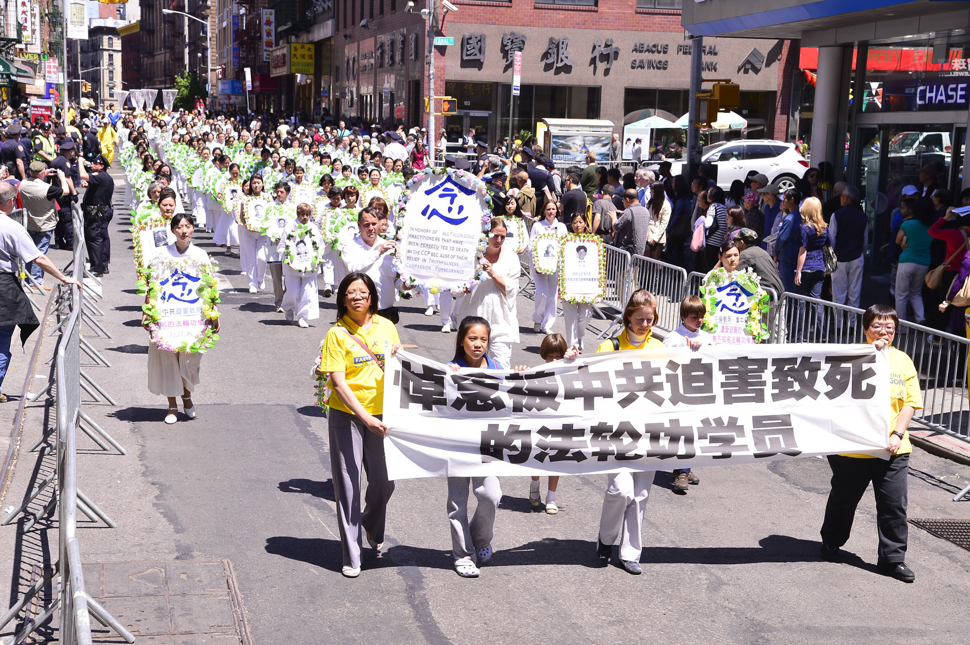 当队伍经过一家教堂门口时,在纽约居住了十一年的陆女士和先生站在门口默默地看着游行队伍的经过,她对记者说:“我从大陆出来十一年了,我虽然是基督徒,但我支持法轮功,我天天看《大纪元时报》,我知道法轮功是非常的正,而中共是非常的邪,所以它要迫害法轮功。但邪的永远不能战胜正的,看看多壮观,多浩大。但有时觉得很多国内出来的大陆人很可怜,他们只听共产党的谎言,不听正的声音。看看《大纪元时报》就知道,共产党快要完了,我天天盼着它灭亡。”