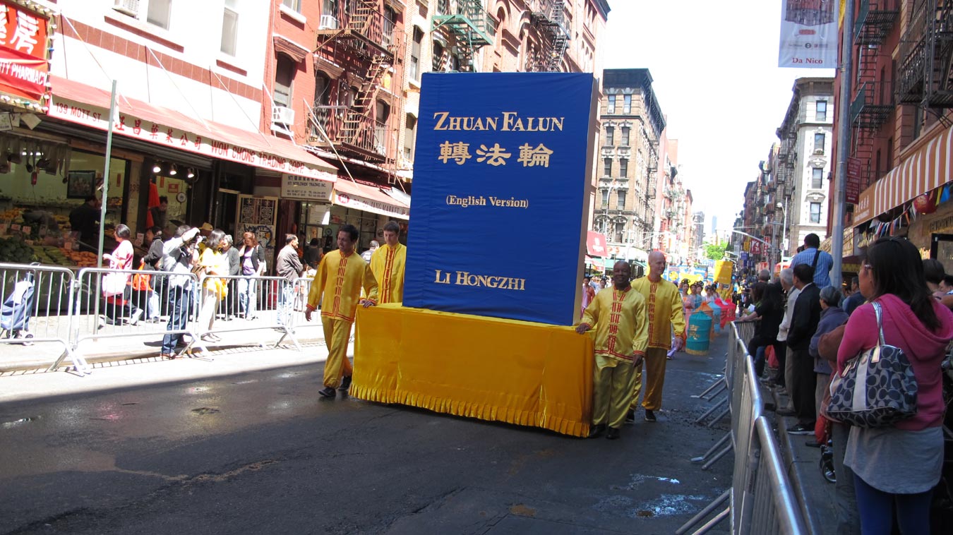 二零一二年五月十二日,来自全世界各个国家的七千多名法轮大法弟子汇聚在纽约曼哈顿,举行一系列活动庆祝法轮大法洪传二十周年。在游行队伍里,记者采访了几名法轮功学员,他们谈了《转法轮》这本书对他们的深刻影响。