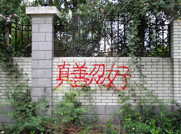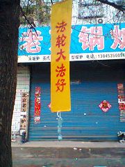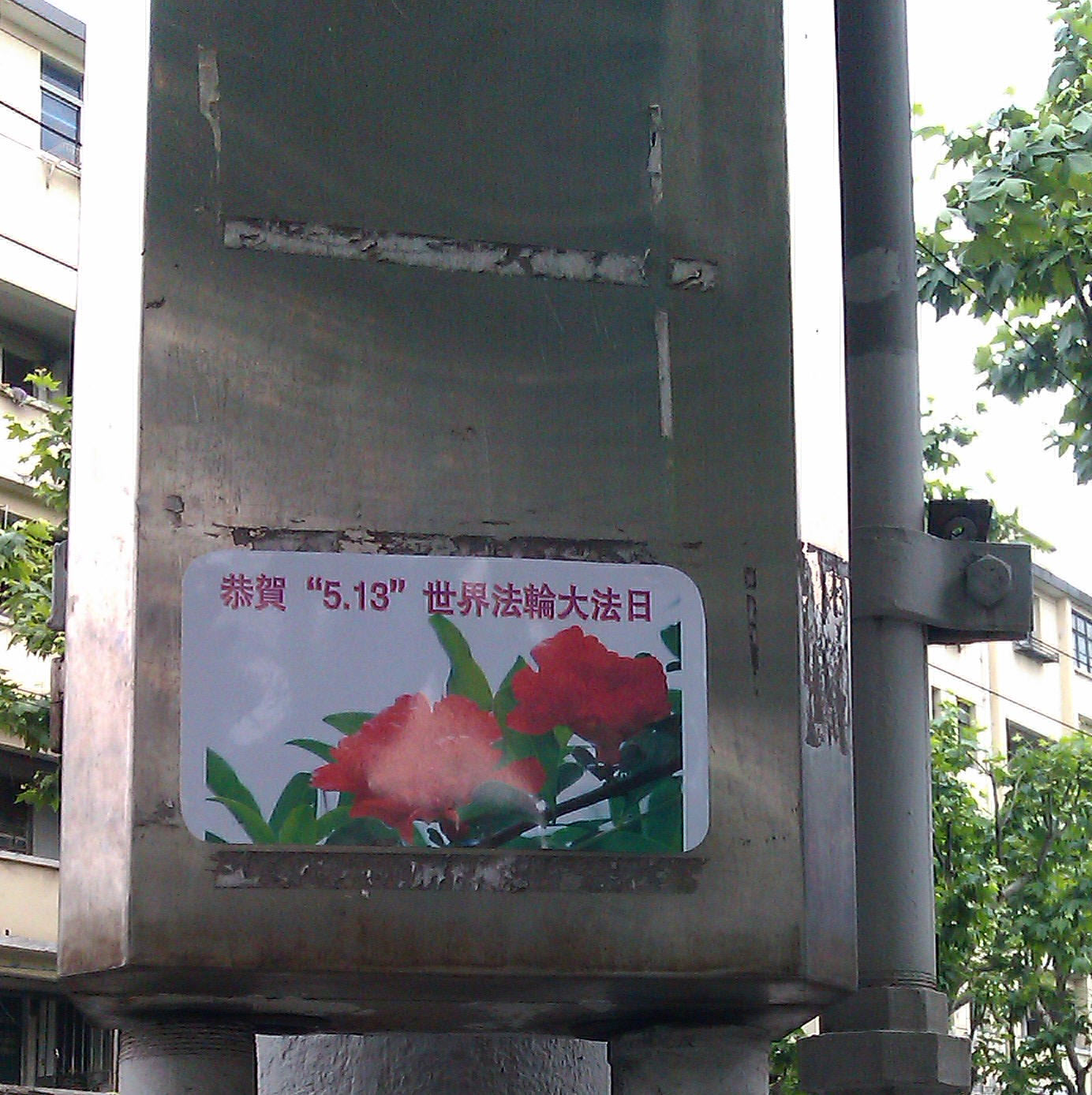 这是中国大陆华东某大城市,于2012年5月13日为庆祝世界法轮大法日、法轮大法洪传二十周年,拍摄的当日当地的真相图片。因为大陆的特殊情况,只是截取了局部的小图。