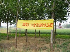 河南大法弟子悬挂真相横幅庆祝法轮大法洪传二十周年