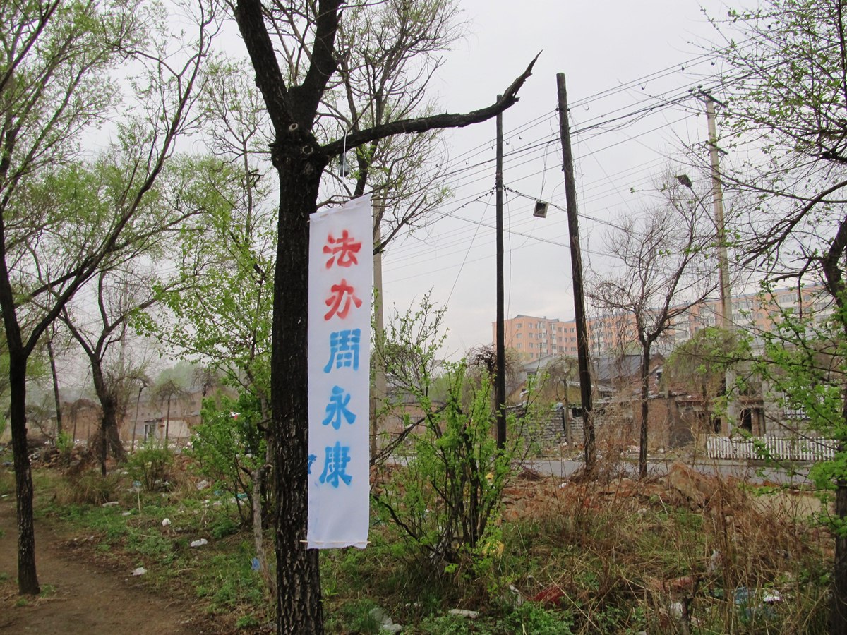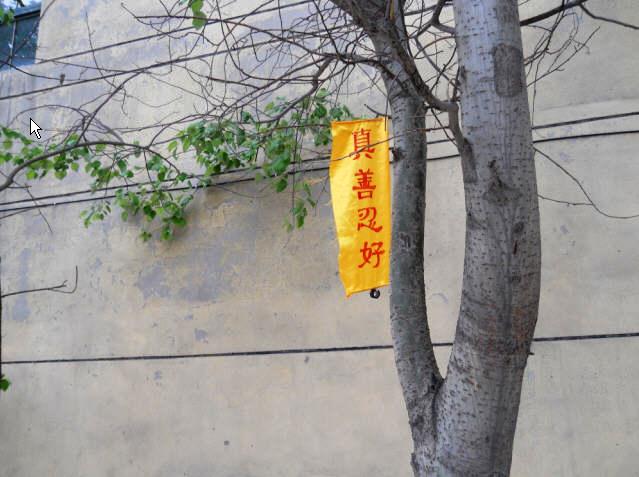 牡丹江市公园、路边和住宅小区内出现大量的真相条幅和不干胶贴。上面写着:“法轮大法好!”、“真善忍好!”、“法办周永康”。 等字样,向人们传递着真相。