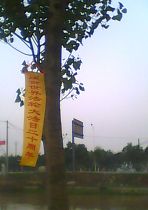 广东梅州大法弟子挂真相标语庆贺法轮大法日