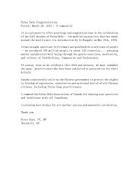 “我在此祝贺法轮大法在当前的情况下能够坚守自己的原则,你们的坚持启迪着众人,我们都应该参与其中,宣扬美好和人道的善行。”