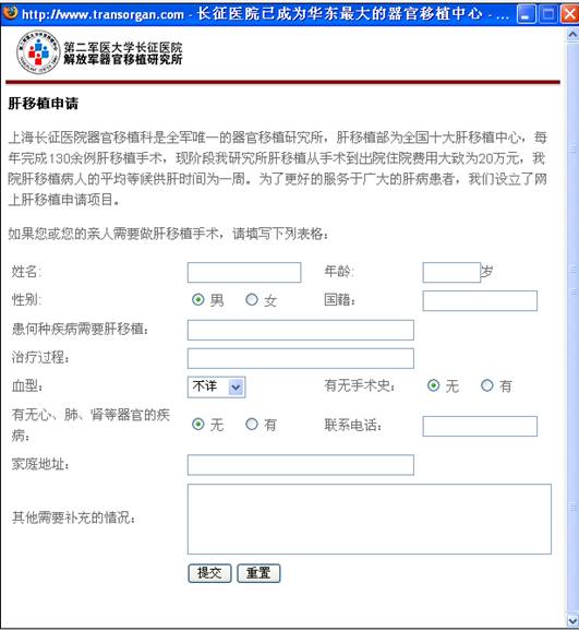 49、《第二军医大学附属上海长征医院网》“肝移植申请”