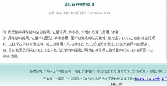 “请问肾移植的费用” 来源:广州军区广州总医院(陆总)