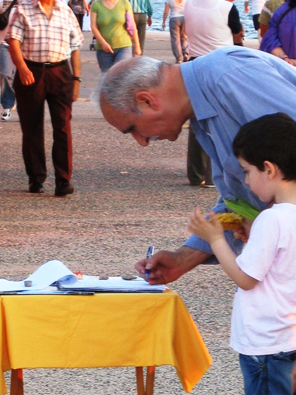 ![]() 爷爷带着孙子来一块儿签字反迫害 |
