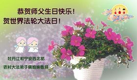 1、牡丹江大法弟子祝贺师尊生日快乐,庆祝5.13世界法轮大法日