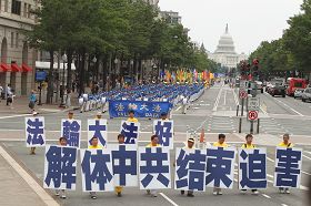 ![]() 葛敏在国会山“停止迫害法轮功,声援九评退党”集会上 |