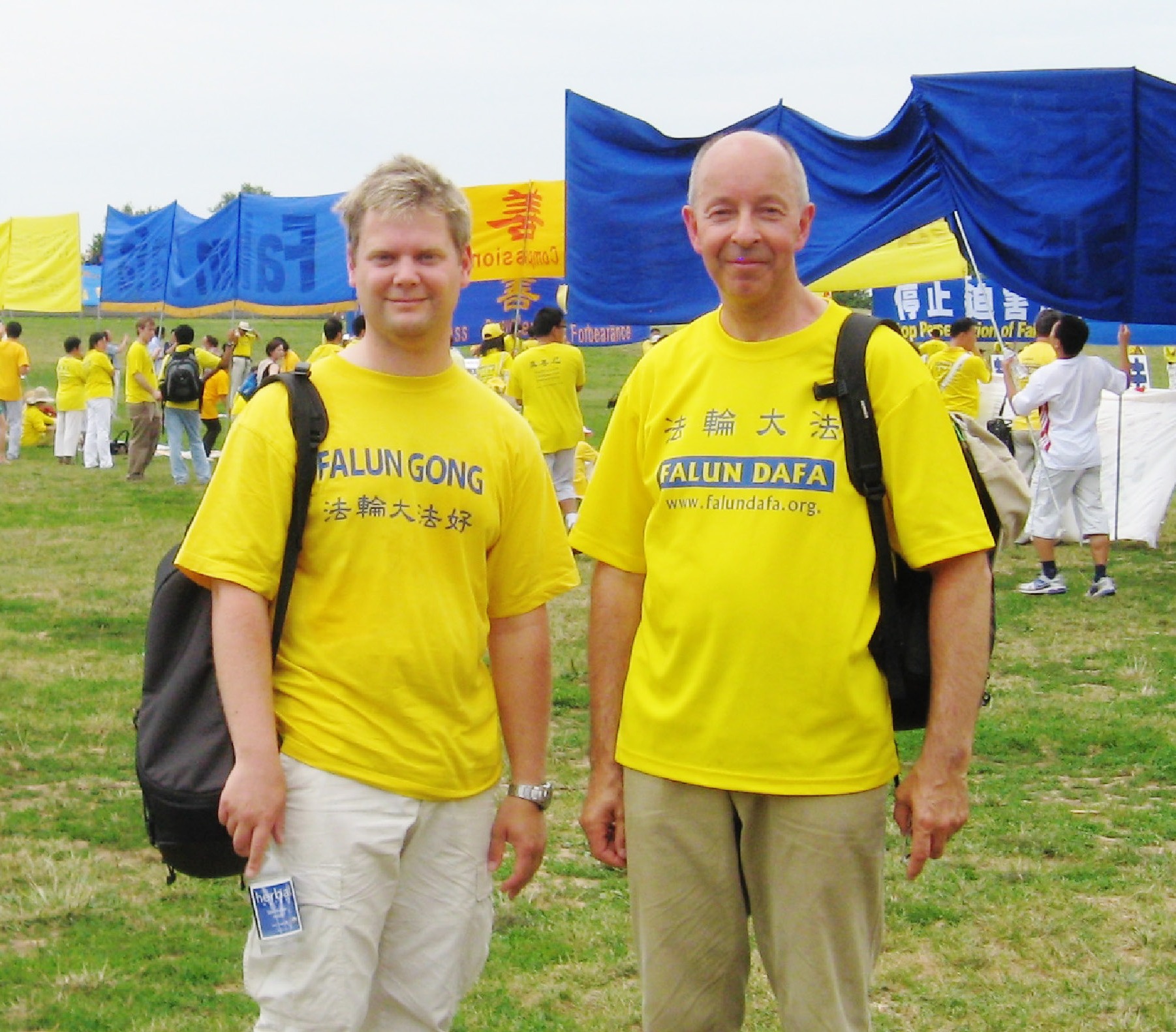 ![]() 瑞典法轮功学员斯文(右)与托马斯参加在华府纪念碑广场的集会 |