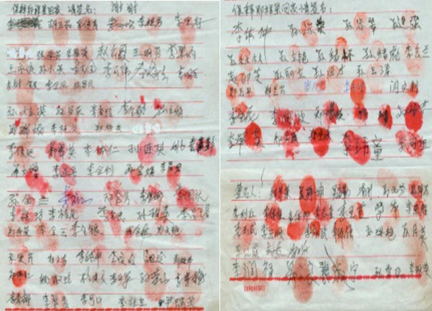 随后,又在河北唐海县发生五百六十二位村民按手印,要求释放被无辜绑架的法轮功学员郑祥星。在黑龙江伊春市,更发生了一万五千名素不相识的民众为法轮功学员挺身而出,在被绑架的法轮功学员的女儿替父鸣冤的《喊冤昭雪书》上签名并按上大红手印的事件。