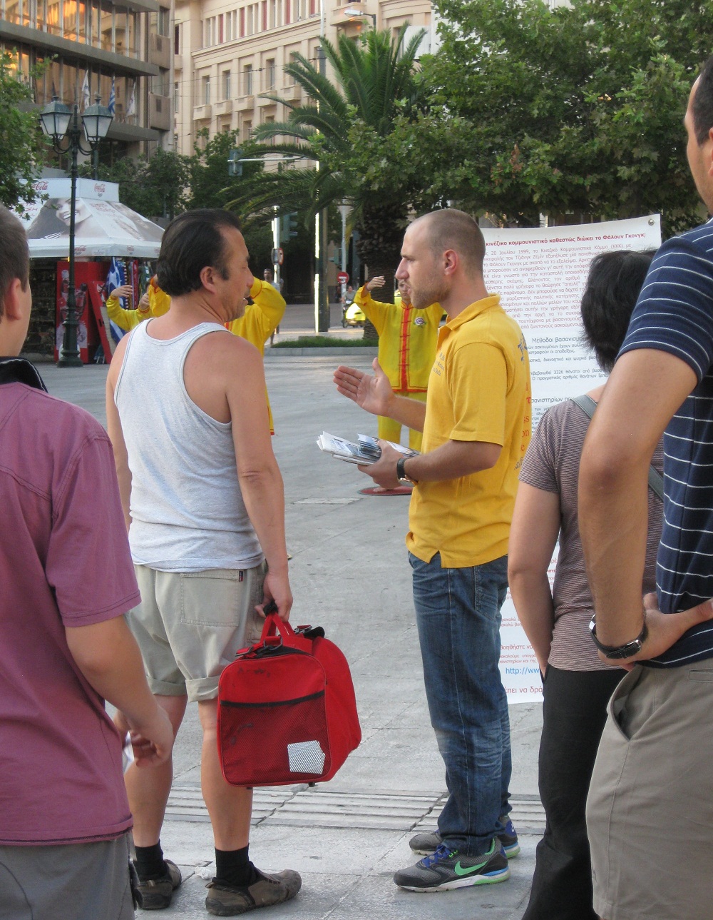 ![]() 法轮功学员在雅典市中心中央广场举办讲真相活动 |
