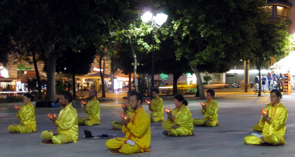 ![]() 雅典市中心中央广场上,法轮功学员烛光悼念被中共迫害致死的同修 |