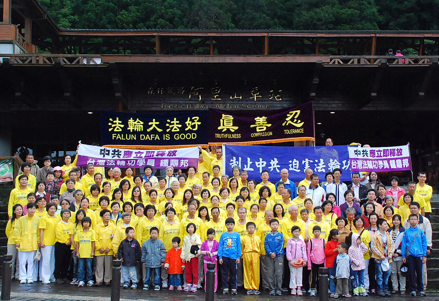 ![]() 法轮功学员在阿里山火车站前拉横幅要求释放被中共非法扣押的学员钟鼎邦 |