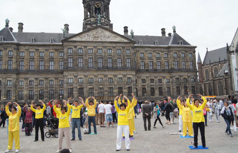 ![]() 荷兰法轮功学员在达姆广场炼功 |