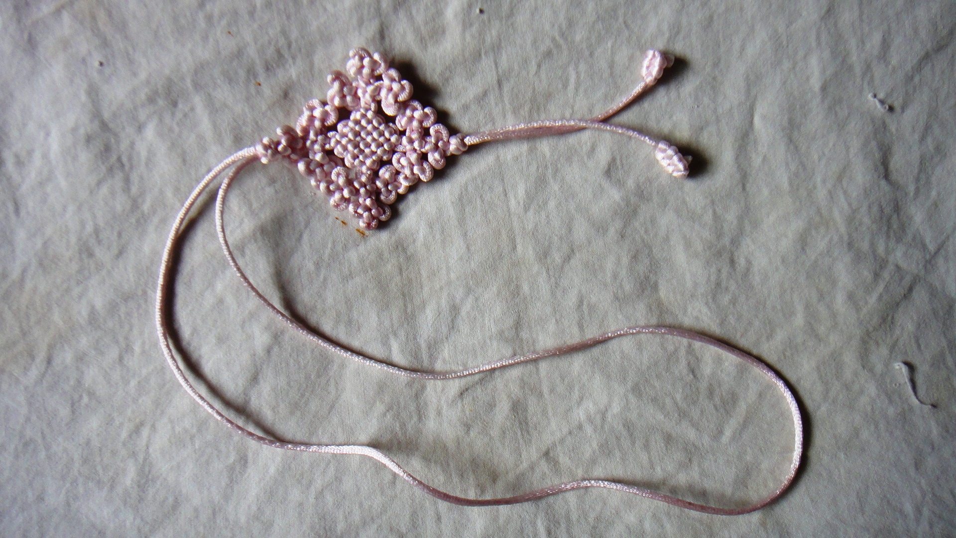 以上照片,是法轮功学员二零零零年至二零零二年在河北石家庄女子劳教所四大队生产的奴工产品:中国结和工艺扇的扇面。还制作过装“雪中飞”羽绒服的纸提袋、扎鞋帮、装牙签等多种奴工产品。