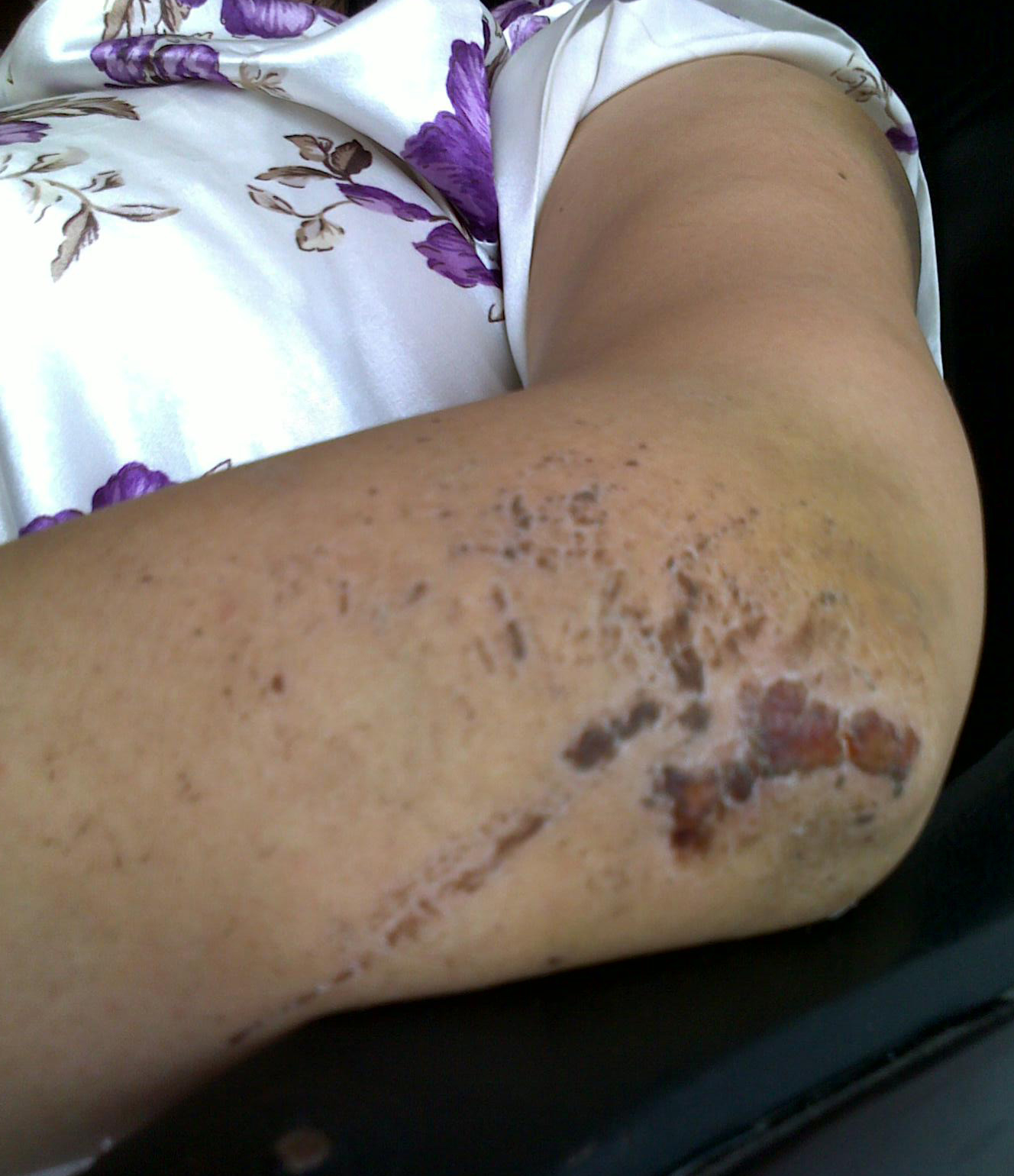送往锦州拘留所前高鸿英已被打得遍体鳞伤,头上全是包。左眼青紫,左上臂有青色脚印,腰椎尾骨剧痛,在锦州医院检查身体时恶警还动手打她,使她的膝盖受伤,恶警并撒谎说她身上的伤是自己摔的。检查身体时,恶警不让医生检查受伤的部位。