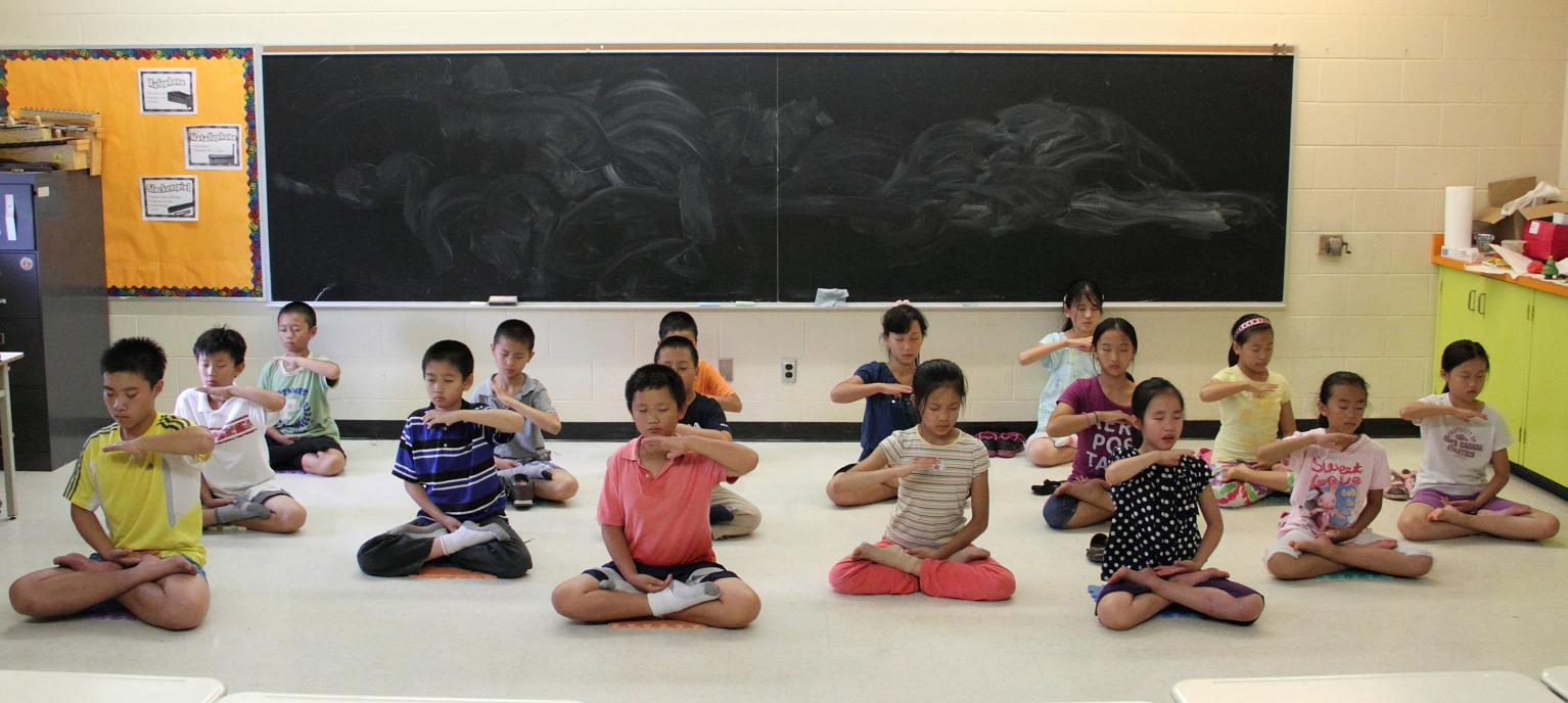 多伦多明慧学校夏令营的法轮大法小弟子们在炼功