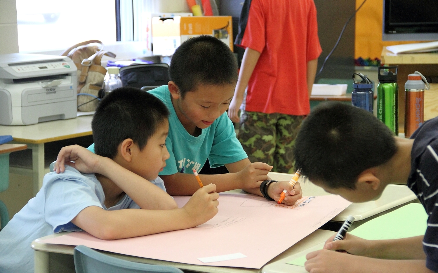 多伦多明慧学校夏令营里,孩子们合作完成项目