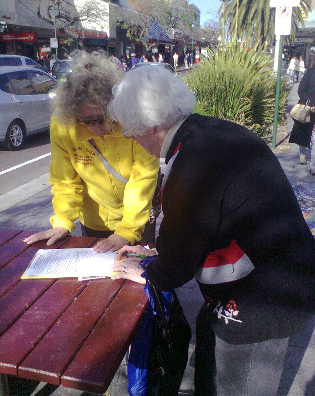 活动下午三点半结束,数十名中国人声明三退(退出共产党、团、队组织),上百名悉尼市民签名声援制止中共迫害法轮功。