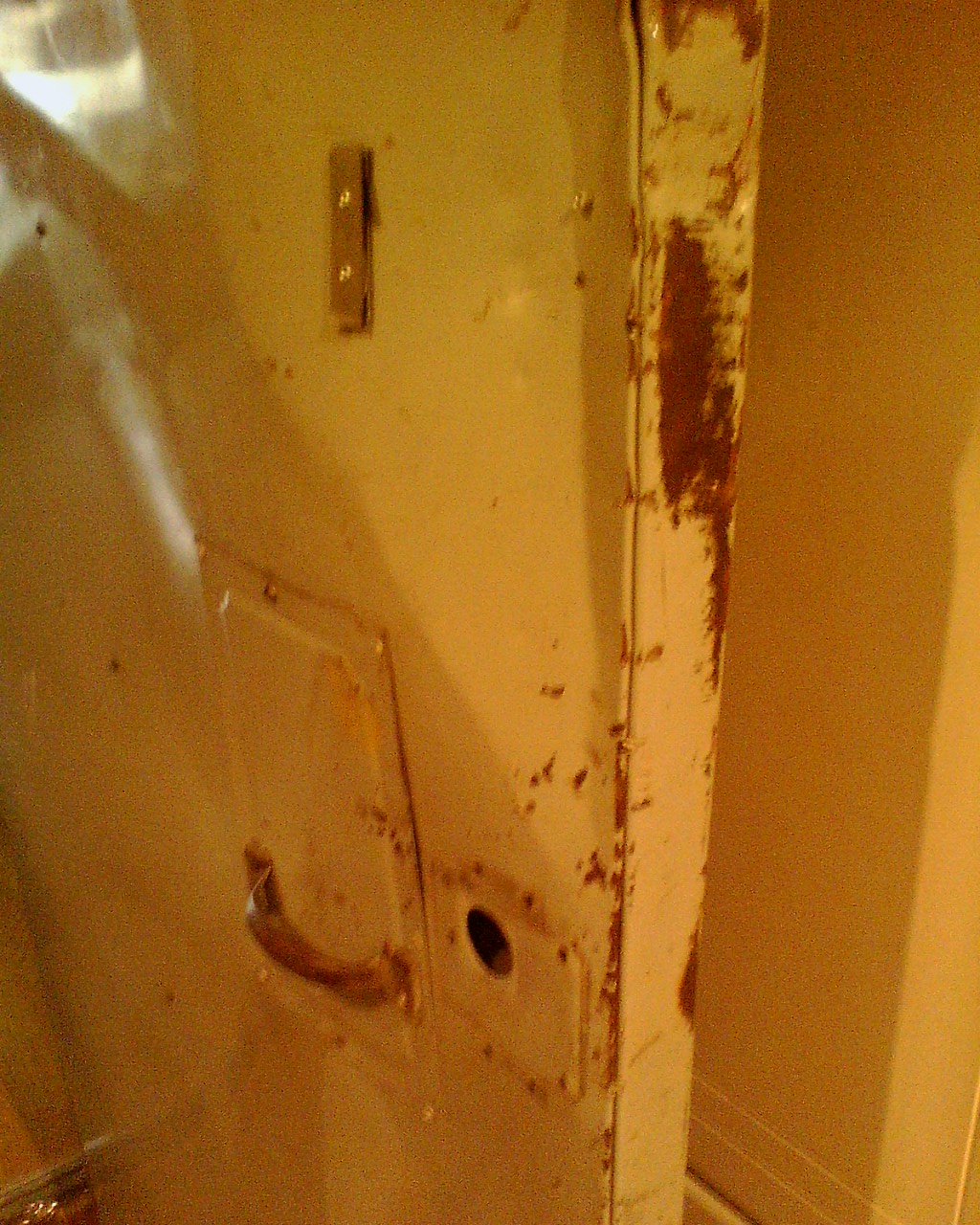 二零零五年四月十三日,家属会见佘钺,看到他脸上有肿块,有青,母亲问脸怎么了?才知道是被恶警唆使的犯人杜刚打的。母亲说:“怎么里面还打人哪?” 佘钺说:“我的肋骨都叫他们打断了,现在还没好,都能摸出来。”这时,在监听他们母子谈话的狱警吕传贵大喊:“不要讲了!”事后吕传贵对佘钺的母亲保证不会再出现这样的事了。
