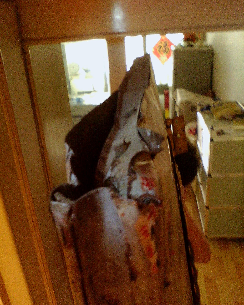 随后,恶警到佘钺住处野蛮抄家。本来恶警动用了消防车意图从窗子闯入,但佘钺家楼前场地狭小消防车开不進去,恶警们就动用其它工具砸坏了家中的防盗门,恶警闯入室内后开始翻箱倒柜,此时正赶上佘钺的弟弟佘钢回家来探望母亲,见此情形,佘钢与恶警们发生激烈争执,质问其身份,一恶警掏出证件在佘钢面前晃了一下便收起,没有看清其警号及姓名。恶警们拿出手铐威胁佘钢将其限制在房间的一个角落,趁机非法抢走法轮大法书籍、手提电脑、新唐人电视卫星接收器(派人爬上楼顶将卫星锅强行拆除)、佘钺已逝父亲留下的珍贵纪念品等诸多私人物品。