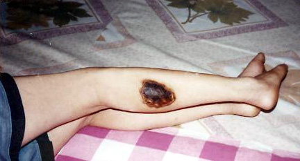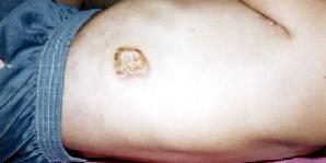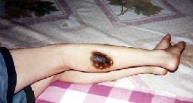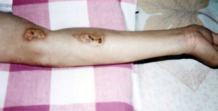 我们开始绝食抗议迫害,六一零把我们分散开每个号放一个人,用刑事犯迫害法轮功学员。这真是黑白颠倒、好坏不分啊!绝食第三天,就开始给我们强行灌食、盐水,折磨我们。十三天中强行灌食4-5次。直到我被折磨的休克,被送到医院已人事不省了。他们把我放在冰冷的木板床上,我已经失去了知觉。恶警又让抬我去医院的刑事犯董某某用滴流瓶灌上开水放到我身上,使我身上八处被烫伤。到现在二年过去了,疤痕还在(有照片)