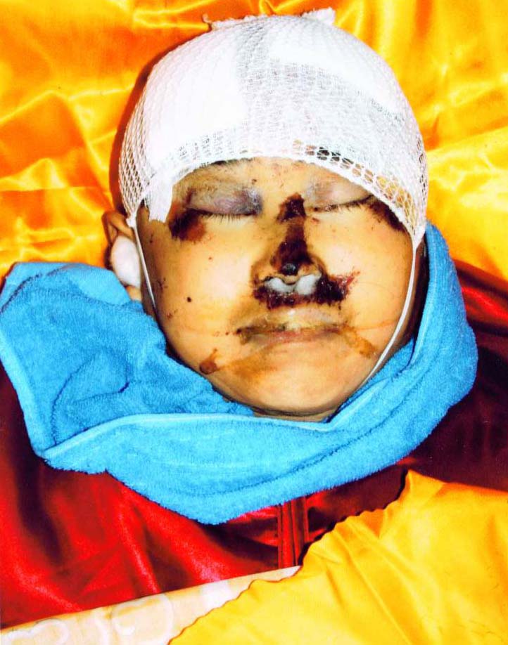 葫芦岛教养院遭受的迫害:二零零一年十一月末,葫芦岛市调动防暴大队对一楼坚定的法轮功学员进行灭绝人性的迫害,电棍声、喊叫声不绝于耳,电焦的气味弥漫在空气中(别人后来告诉我的)。接着几个普教把我架走,在路上他们极其恐惧的告诉我,不要反抗,问什么就说什么,此时我的大脑一片空白,把我架到楼外另一个楼的二楼,警察把我架到一个屋里,都是不认识的,桌上放着许多电棍,我被强行戴上背铐,被绊倒在地,几根电棍加身,电击我的脖子,一根电击不停的电击我的脸和嘴,另有电棍电击我的后背,我的大腿内侧,我的脚心。恶警发泄完私愤后,他们把我带回了三楼。屋里所有能够照出我面目的东西都被收走,从同屋人惊讶的表情,我知道我的脸被电击的变形了,肿大了(后来,和我不错的普教告诉我,大家都认不出我是谁)。我的一只手被铐在床上,张口吃饭都很困难。我虽然听别人说过人油,但我从未见过,可这次我却亲身见到了,黄黄的、粘粘的,弄得我盖的被到处都是。不几天左鼻子下边和左边脸开始结痂并伴有痛感。我开始绝食抗议对我的迫害,第一天我被强行灌了半瓶啤酒,第二天中午又被灌了据说有二两白酒。我的双手被铐在两边的床上,一根长长的胶管从鼻孔插入到胃里,露出一个头,被固定在头上供灌食用,胶管和咽喉处经常摩擦很是痛苦。就这样坚持了三十六天后被放回,当时脸上还留着被电棍电过的针眼似的伤痕达三十余处。