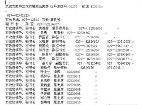 附件二:湖北省、武汉市政府、公安、检查、司法等机构信息(请同修注意相关信息的更正和更新,此处所载信息不准确处还请各位同修指出和修正)