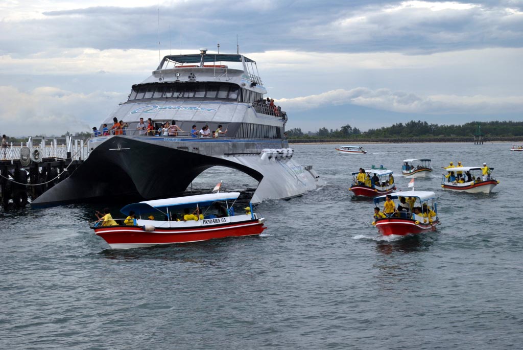 第三天,大法小弟子们驾着五艘小艇欢迎一艘载着逾三百名中国大陆游客的观光艇,当观光艇靠岸时,孩子们友好地挥着手,高喊“法轮大法好!”“法轮大法好!”