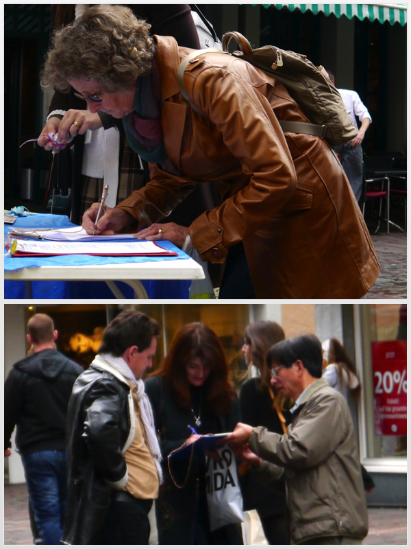 不仅仅是在苏黎世的利马特河畔,法轮功学员连续数周在瑞士各大城市征签,要求制止中共活摘法轮功学员器官,停止迫害法轮功。有的人对此已有所耳闻,看到展板就主动来签名,有的误认为这只是中国一些犯罪集团的行为,当他们了解中共政权即是首犯时,非常震惊,签名谴责这一暴行。