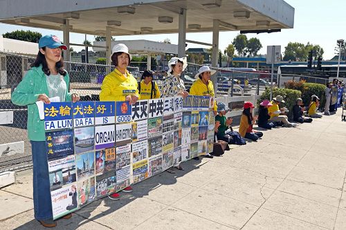 【明慧网二零一三年十月十九日】在“美西国际法轮大法修炼心得交流会”即将召开的前一天,二零一三年十月十八日,已有来自五大洲的法轮功学员陆续抵达大洛杉矶地区,其中部份学员来到了华人聚居的蒙特利尔公园市,在市中心的繁华路段的道路上,展开了各种揭露中共酷刑迫害,以及呼吁人们了解法轮功真相、退党保平安等横幅,向世人揭露中共对法轮功长达十四年的迫害,并声援一亿四千八百万中共人退出了中共党、团、队。许多过往车辆鸣喇叭表示支持,有不少行人停下来与学员交谈了解真相。