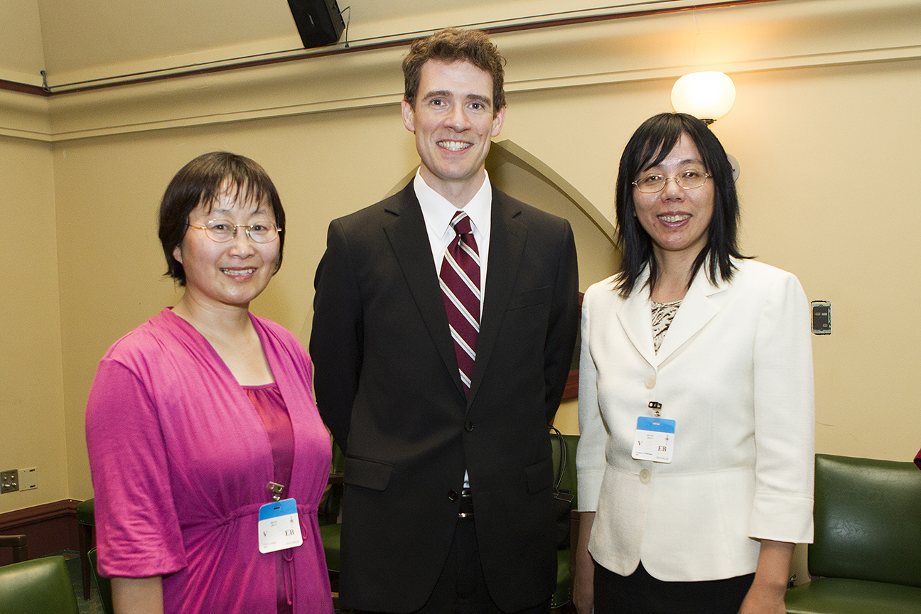 ![]() 加拿大宗教自由办公室大使安德鲁•班尼特(Andrew Bennett,中)和法轮功学员在一起。 |