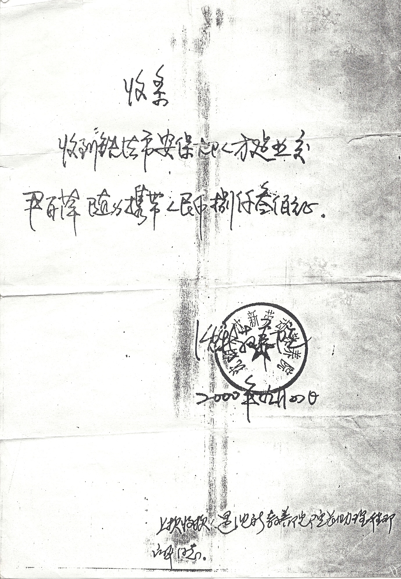![]() 二零零一年九月到北京告状被方建才抢走八千三百元的收据 |