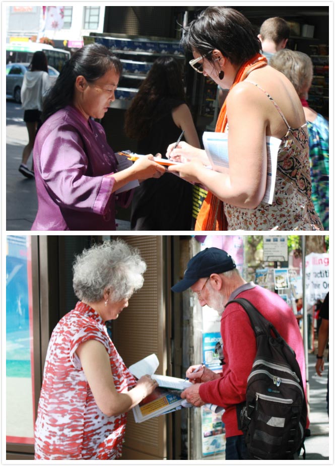 还有的澳洲年轻人听了法轮功学员瑞秋(Rachel)向他们讲清真相后,都非常愤慨,萝拉(Lola)和克里斯蒂(Christine)说我们要签名救人。他们还要把真相传播到他们的脸书上去,让更多的人明白真相。