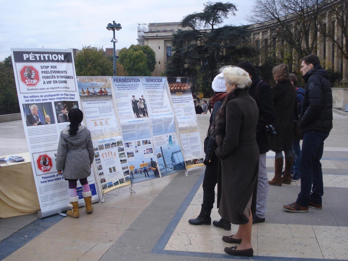 【明慧网二零一三年十一月二十七日】(明慧记者周文英巴黎报道)二零一三年十一月二十四日星期日下午,法国部份法轮功学员来到埃菲尔铁塔旁的巴黎人权广场,进行了炼功、讲真相及医生反对活摘器官协会(DAFOH)的征集签名活动,呼吁停止正在中国发生的对法轮功的残酷迫害