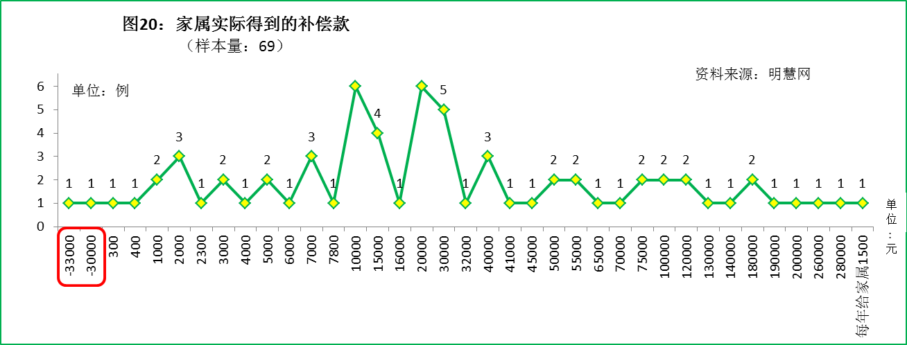 40%的家庭以申诉/请愿的方式要求当局对死者家属提供经济赔偿,并惩处责任人,包括29%的家属可能是自己申诉/请愿的,9%的家属请律师帮助申诉/请愿,1%的家属找记者或朋友帮忙申诉/请愿,1%的家属写信申诉/请愿;