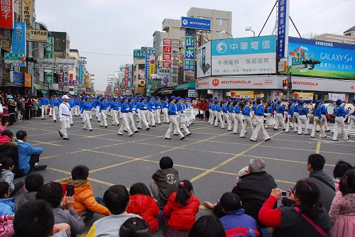 台湾法轮大法天国乐团由二百多位团员组成,军容壮盛,团员表示,从嘉义市中山路的起点走到体育场,全程近三公里,嘉义市民再次看见雄壮的军乐队,都雀跃不已。