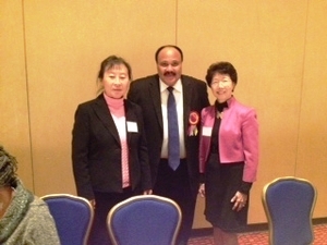 ![]() 马丁﹒路德﹒金三世(中)和华盛顿DC法轮功学员Angela Lee(右)以及于真洁(左)在一起(大纪元图片) |
