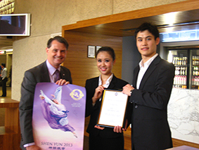 昆省议员安东尼•修特顿(Anthony Shorten MP)致贺状,恭贺神韵。神韵演员回赠有亲笔签名的海报。