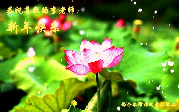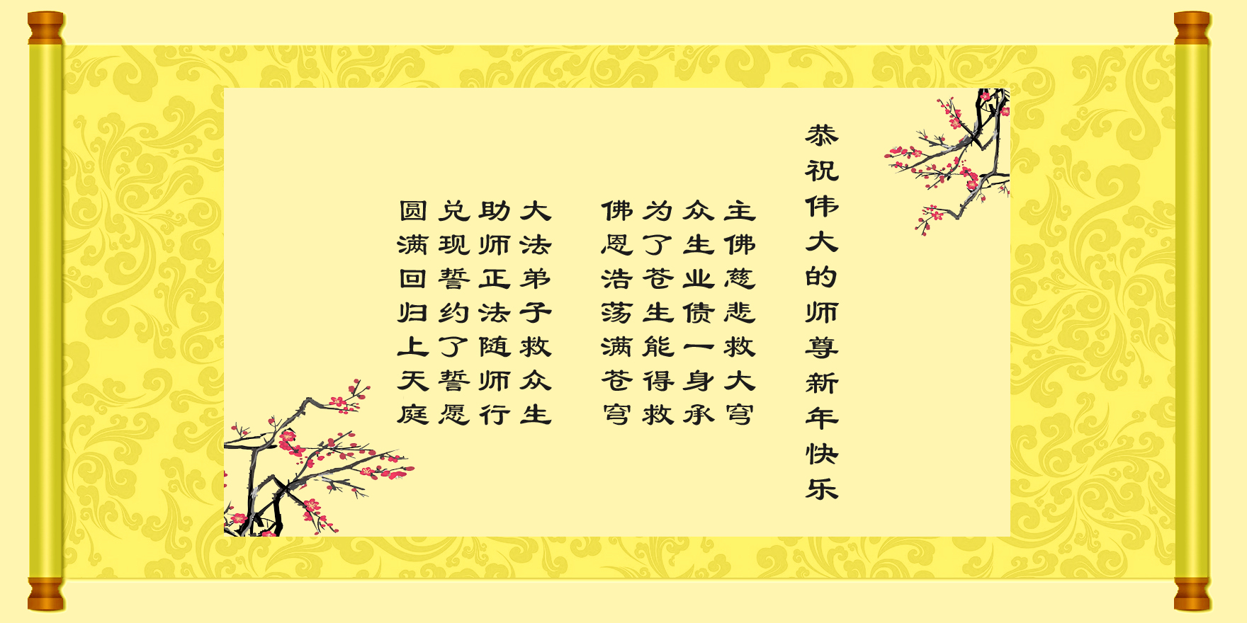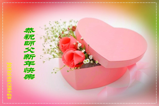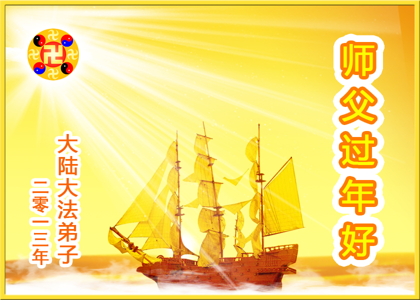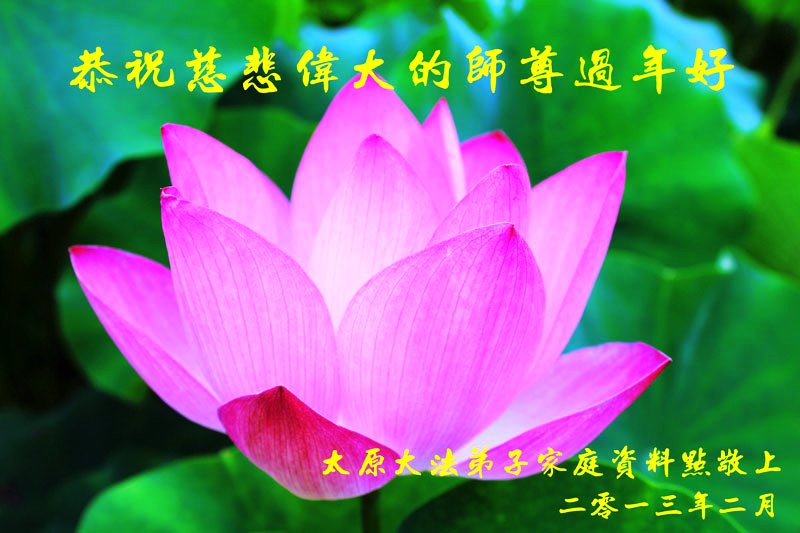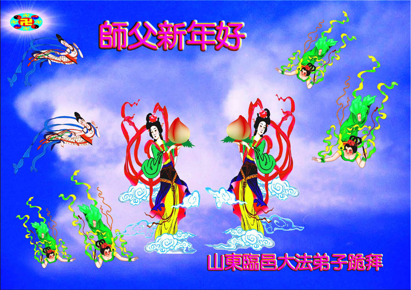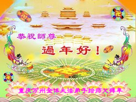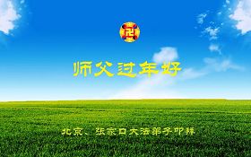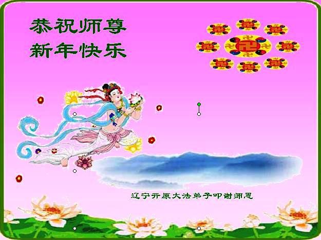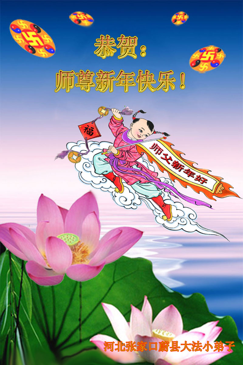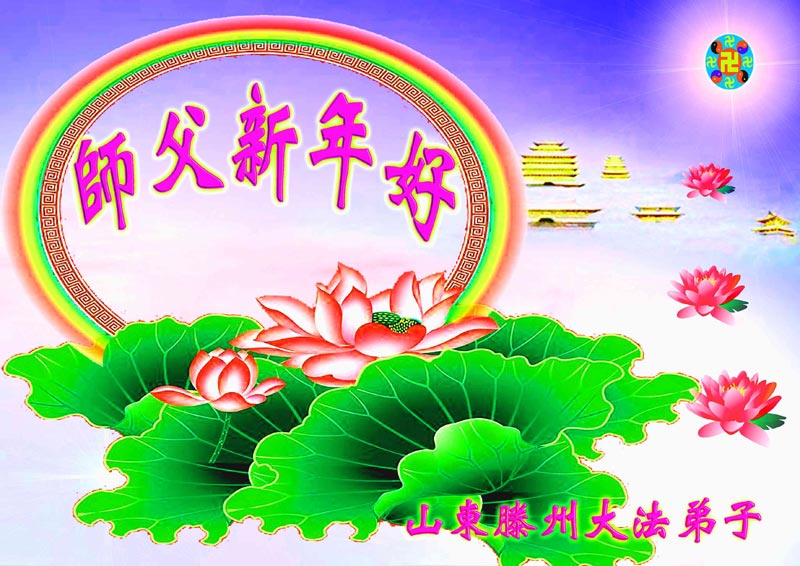 您为拯救众生、为您的弟子们修炼提高护航实在太辛苦了,您为人类带来了无限的光明和希望。看到您的弟子在中共高压迫害的14年里,他们一如既往,年复一年日复一日的做着讲清真相救人的大事,而且不求回报,无私付出,只有您这高德师父才会教出如此善良无私的徒弟。为表敬意,借新年佳节之际发个贺卡,祝您新年愉快,合家欢乐。