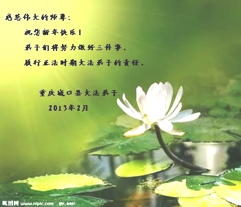 <英文版: http://en.minghui.org/html/articles/2013/2/10/137555.html>美国纽约华府费城等地大法弟子给师父拜年(12条)