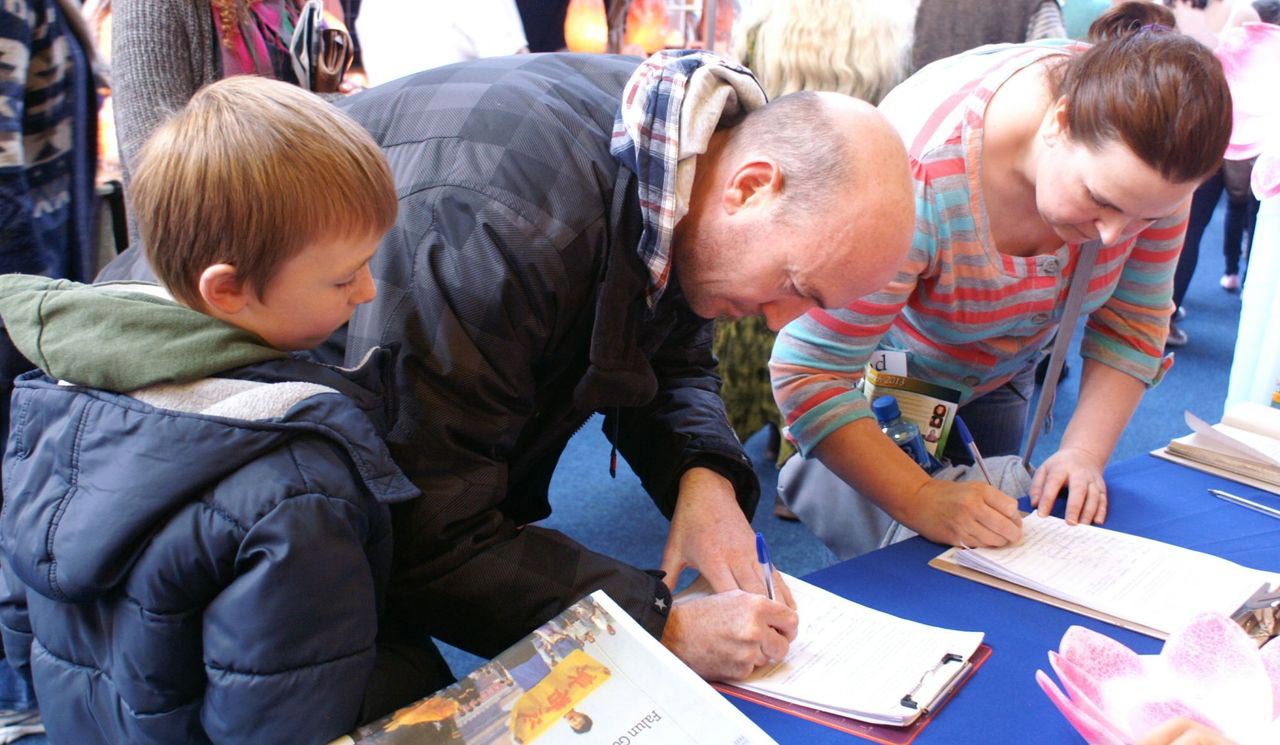 学员在发送莲花的时,会告诉人们莲花下面的小卡片上写有“法轮大法好”、“真善忍”,并解释那些汉字的意思,人们听了都很高兴。同时,很多人还购买了炼功音乐光碟和大法书籍 。一个人看完我们小弟子表演以及功法演示后奔到法轮大法展位,希望买教功光碟。
