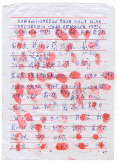 【明慧网二零一三年三月二十六日】(明慧网通讯员湖北报道)近日,湖北省黄梅县近三百名民众签名按手印,联名要求法官主持正义,无罪释放法轮功学员戴美霞。