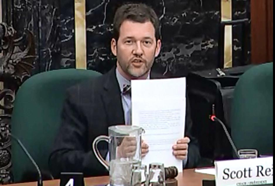 首先提问的是国会议员、人权委员会委员大卫·斯威特(David Sweet)先生。他首先感谢麦塔斯先生和乔高先生所做的证词。“我不得不说,我和我的同事都是以冷静的、理智处理问题的方式担负责任。然而,这个最骇人听闻的问题似乎让最尖锐的人都为之牵情。”斯威特议员在提问中希望两位调查员,对“调查报告很大程度上依赖于逻辑推论的”说法作出说明。