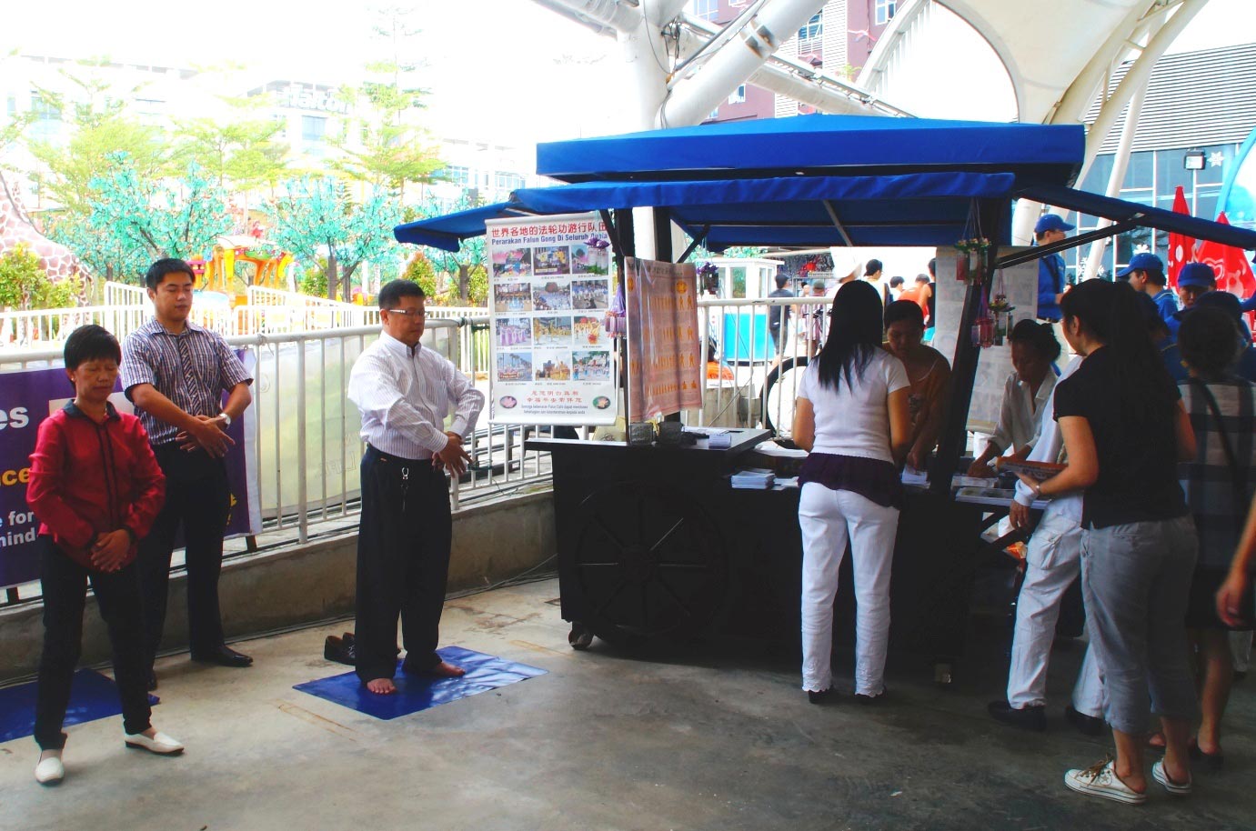此外,主办单位也安排一个摊位给法轮功学员,学员在向民众派发资料的同时也演示功法,吸引了民众前来学炼功法。学员在洪法的同时也为制止中共活体摘取法轮功学员器官做征签。一名先生得知此事后,才了解在中国竟然还发生这样严重的事情,他表示这个征签是具有意义的!